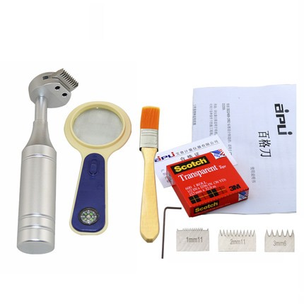 划格器一把;3M(600型)胶带一卷;狼毫刷一把;放大镜一个;塑料携带箱一个